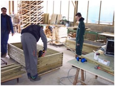 L'ESAT est un fabriquant spécialisé dans le bois et propose, dans sa palette de compétences diversifiées, la construction d'abris de jardin sur mesure, mais aussi de mobilier de jardin, carport et autre afin d'embellir votre extérieur à la lueur de vos envies.